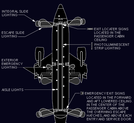 on the fuselage to illuminate the overwing escape routes and ground contact area.