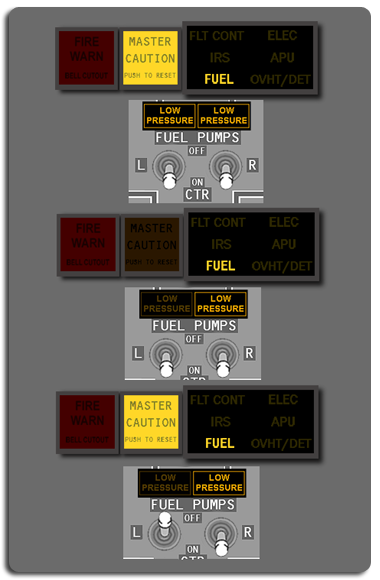 Note: With one Center Tank FUEL PUMP switch OFF, illumination