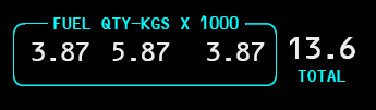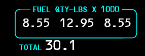 Total Fuel Quantity Indicator - Displayed (white) - Indicates total useable fuel.