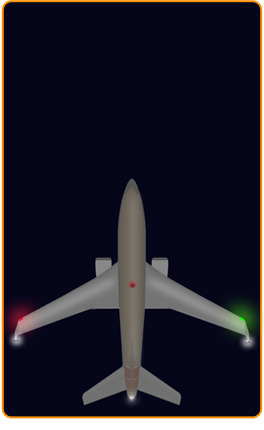 STROBE & STEADY – red and green wing–tip position lights, white trailing edge