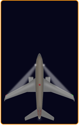 OFF – The wing leading edge lights on the fuselage forward of the wing are